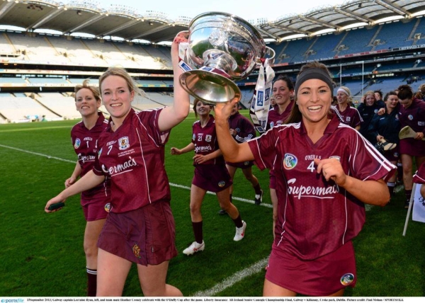 Lorraine Ryan from Knockroe in the parish of Kiltullagh Killimordaly raised the O’Duffy Cup high in the air as crowds of supporters cheered on. As Captain, Lorraine has led the Galway Ladues to victory in the All-Ireland Senior Camoige title beating Kilkenny at Croke Park on Sunday, September 15th 2013.