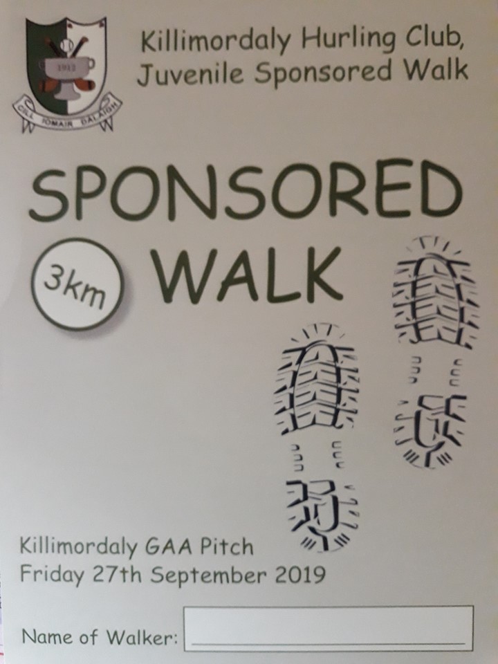 Killimordaly Hurling Club Annual Juvenile 3k Sponsored Walk takes place on Friday, September 27th from the Clubhouse.