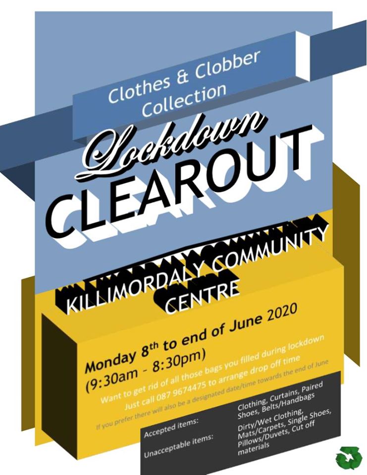 Killimordaly Community Centre is looking for all those black bags full of unwanted clobber you filled during the lockdown.