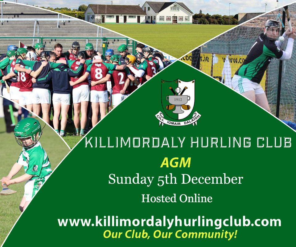 The Killimordaly GAA AGM will take place on Sunday, 5 December 2021 at 5.00pm.
